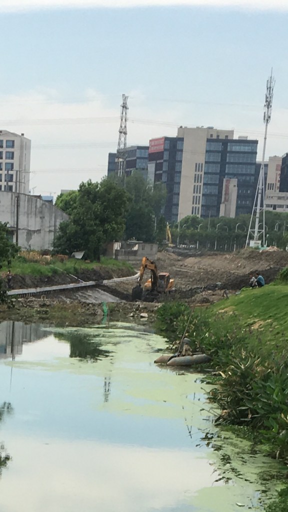 Am Wochenende waren wir ja auf der Suche nach den Reisfeldern. Die gibt es leider nicht mehr in direkter Umgebung. Da man aber hier in China begriffen hat, dass die Umwelt ein sehr wichtiges Gut ist, wird nun mit Hochdruck unter anderem an Parks gearbeitet. Und das zum Glück auch bei uns direkt in der Nachbarschaft. Ich bin mal gespannt, wie viele Wochen es nun dauern wird, bis wir hier gemütlich laufen können: