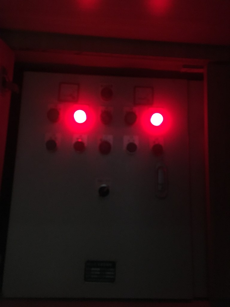 und stellte die Pumpe an, die das ca. 40cm hohe Wasser aus dem Schacht abpumpte.