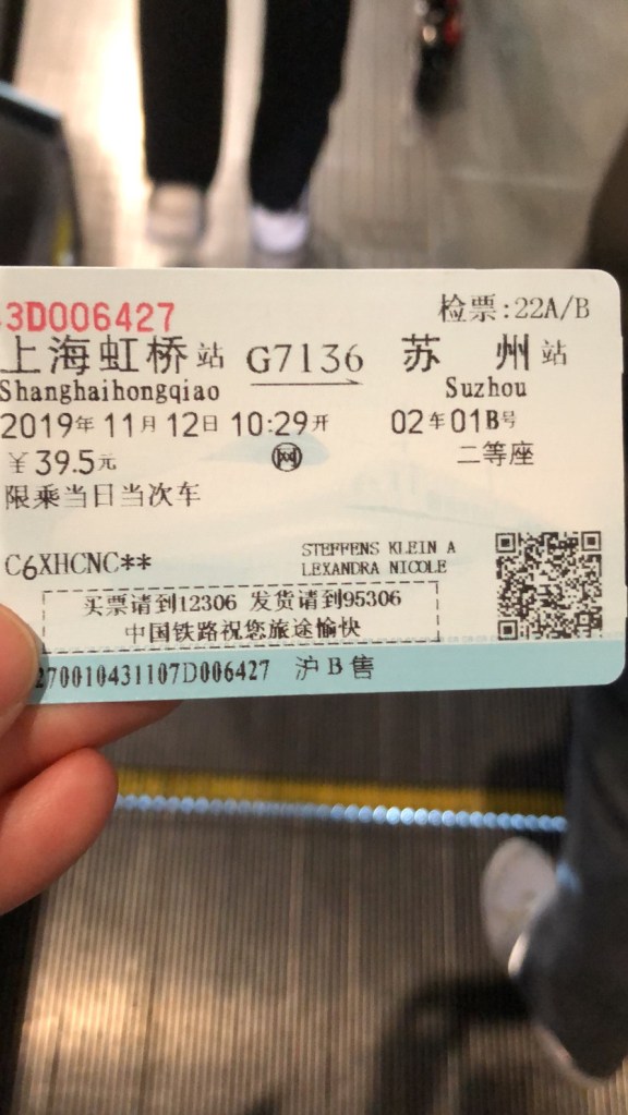 Diesmal habe ich mich auf ein neues Abenteuer eingelassen: eine kleine Reise – quasi alleine! O.K. – nicht ganz alleine…. Ich hatte vor ein paar Wochen eine Frau kennen gelernt, die in Suzhou wohnt und mich eingeladen hat, mir „ihre“ Stadt anzuschauen.