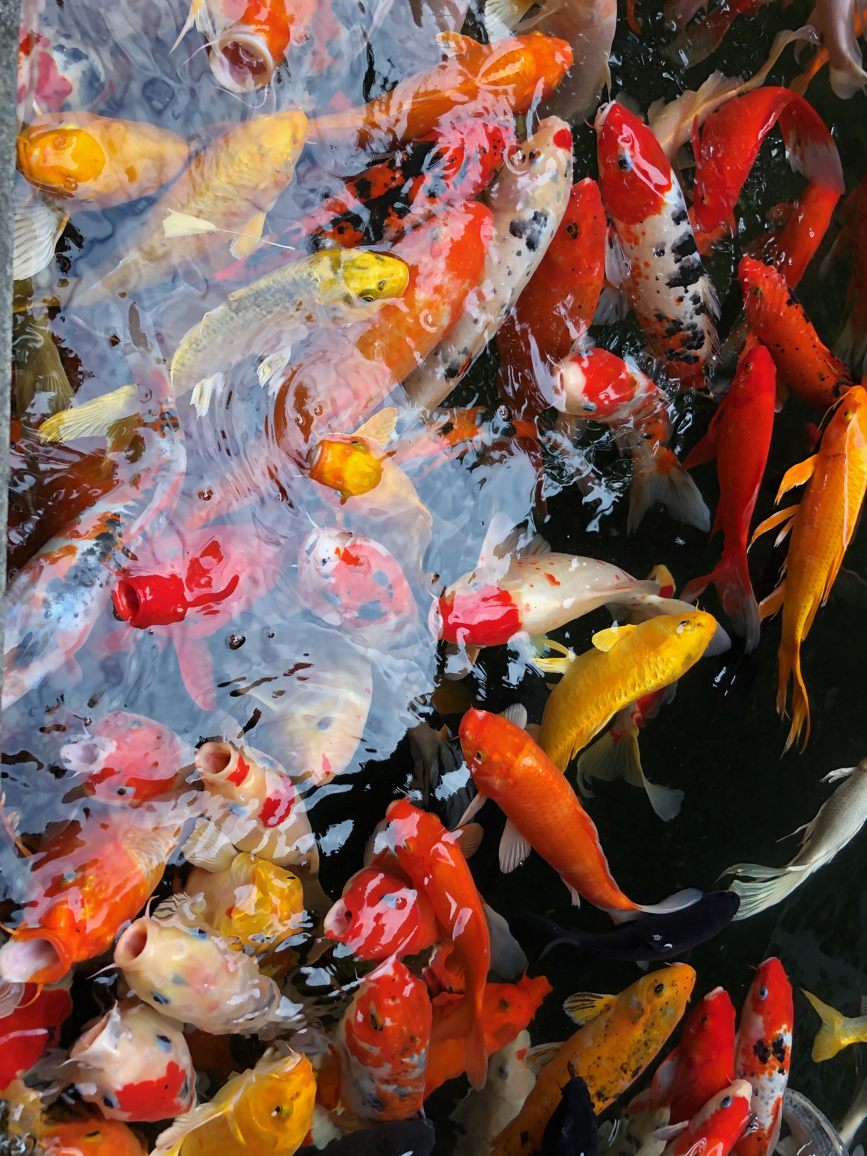 Klar war, dass man draußen Kois kaufen kann und sie wieder in den Teich setzt.