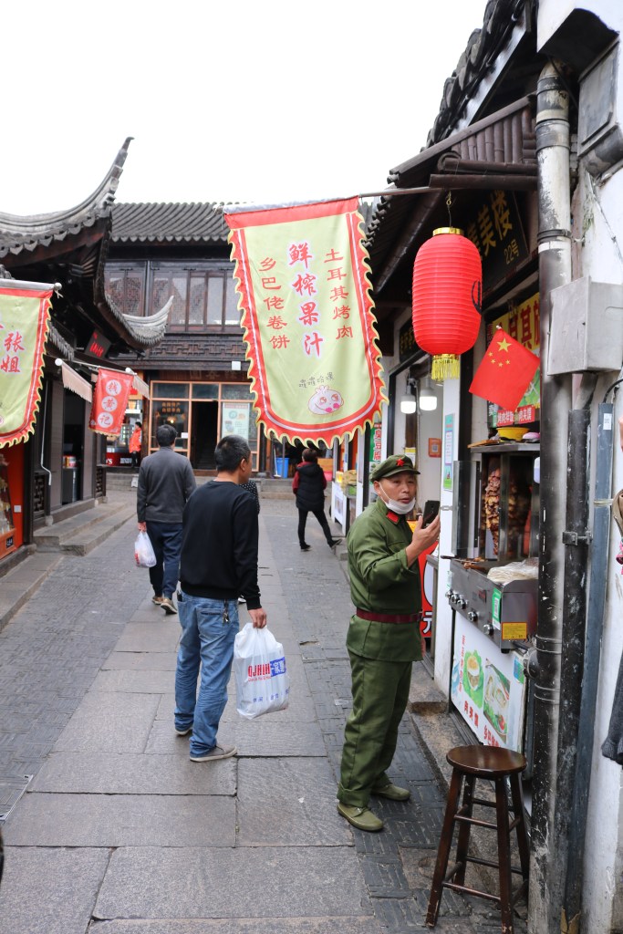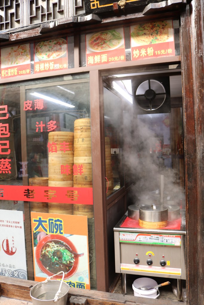 Es ist Donnerstag und damit Abenteuertag mit Nicole! Heute auf dem Programm: Nanxiang Old Street 南翔老街. Ein Teil des alten Shanghais, das spannender Weise nur selten von Touristen eingenommen wird – auf jeden Fall nicht von Langnasen. Das hat zur Folge, dass wir auffielen und auch wieder begehrtes Motiv für Fotos waren – heimlich oder offensiv. Chinesen fotografieren mehr als wir und haben auch nicht die riesige Problematik mit dem Recht am eigenen Bild. Natürlich achten auch sie darauf, keine beleidigenden oder bloßstellenden Bilder zu machen. Aber Selfies, Gruppenbilder, Bilder vom Essen oder Langnasen sind an der Tagesordnung. In Revanche mache ich Fotos von ihnen. Und so haben beide etwas davon!