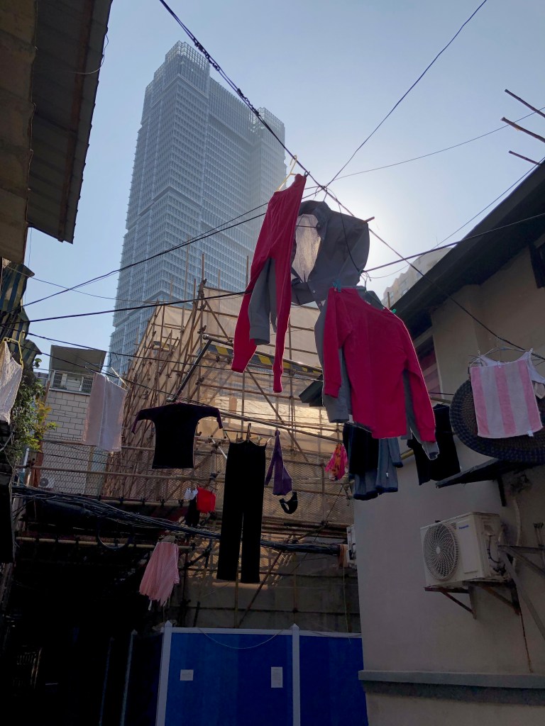 Heute ist es ein „normales“ chinesisches Wohnviertel, in dem traditionell die Wäsche an den öffentlichen Wäscheständern getrocknet wird.
