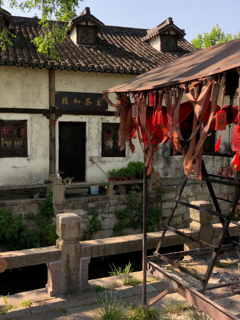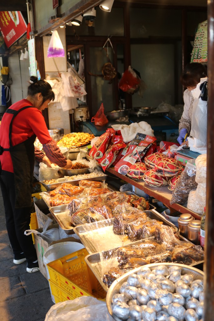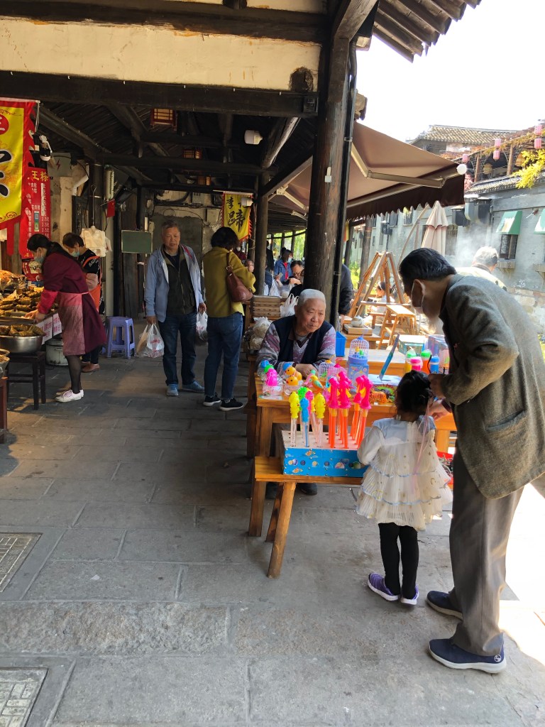 In der Yuan Dynastie blühte in der Stadt der Handel. Geschäfte siedelten sich rechts und links vom Fluss an. Ein ein Kilometer langer Korridor wurde gebaut, der im Sommer vor Sonnenstrahlen und in der Regenzeit vor nassen Füßen schützt. Heute ist es ein gemütliches Plätzchen für die Mittagspause – mit Restaurants und kleinen Geschäften.