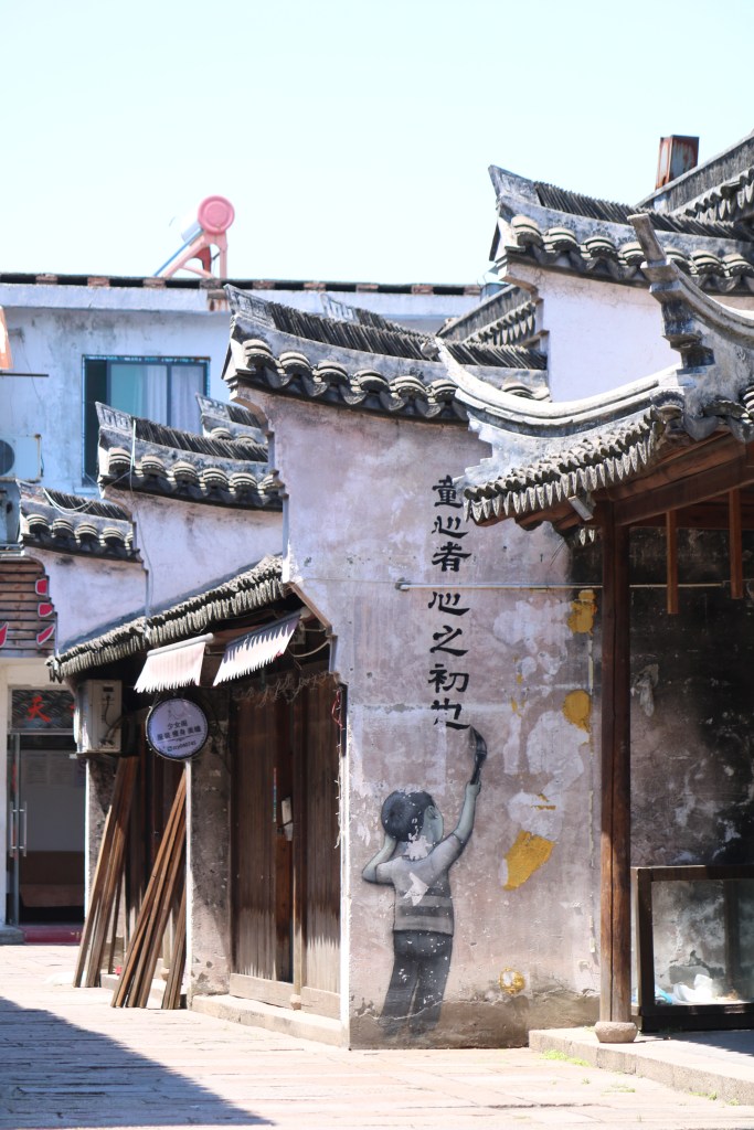 Die meisten Gebäude sind im Stil der Ming und Qing: zweistöckig mit getünchten Wänden und schwarzen Dachziegeln.
