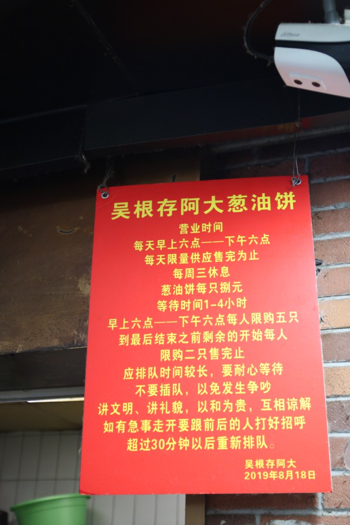 Wie aber oft im Leben kommt es erstens anders, als man zweitens denkt und der Online Essenslieferant Ele.me wurde auf Mr. Wu aufmerksam, investierte und half ihm, seinen Laden an seinem jetzigen Standort zu eröffnen. (Nicht ganz ohne Nebengedanken – anscheinend kann man für das 10 fache des Preises (7 Yuan pro Stück) über den Lieferservice Pfannkuchen bestellen… Aber wer will die schon essen, ohne Stunden angestanden zu haben?