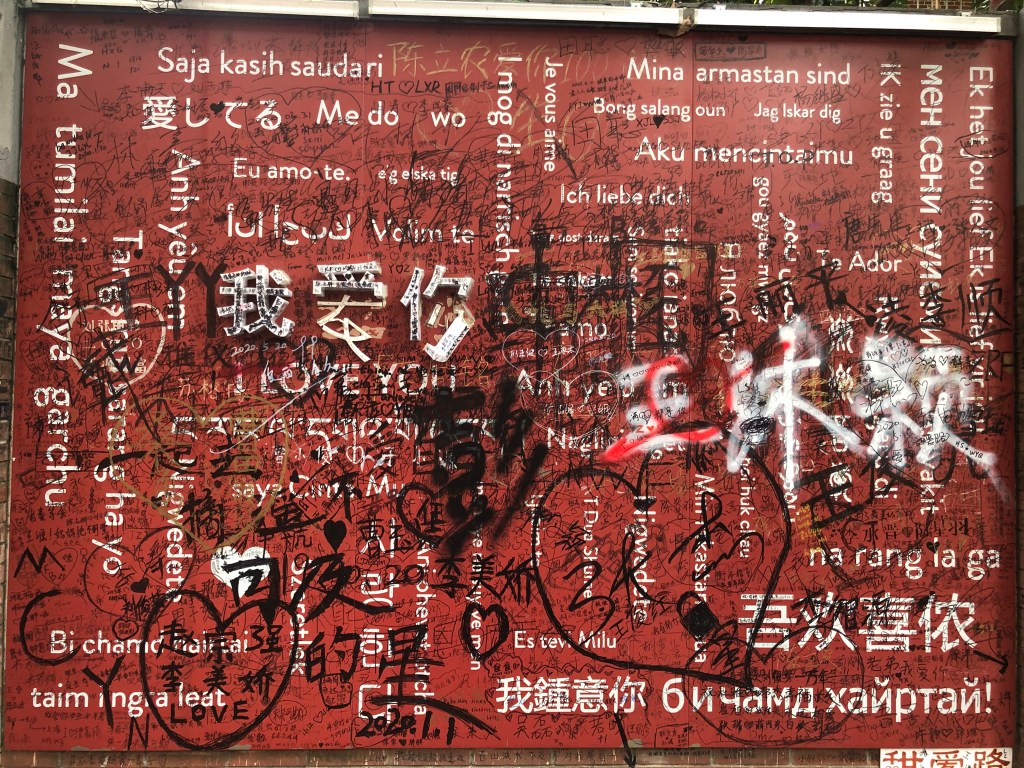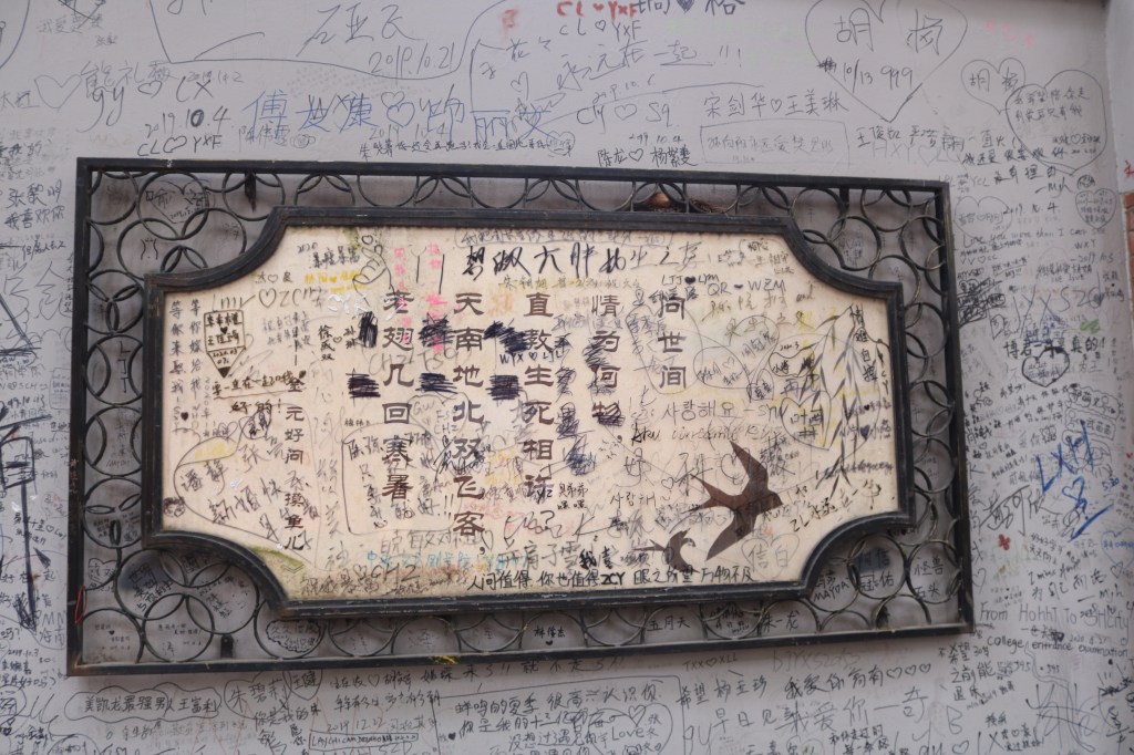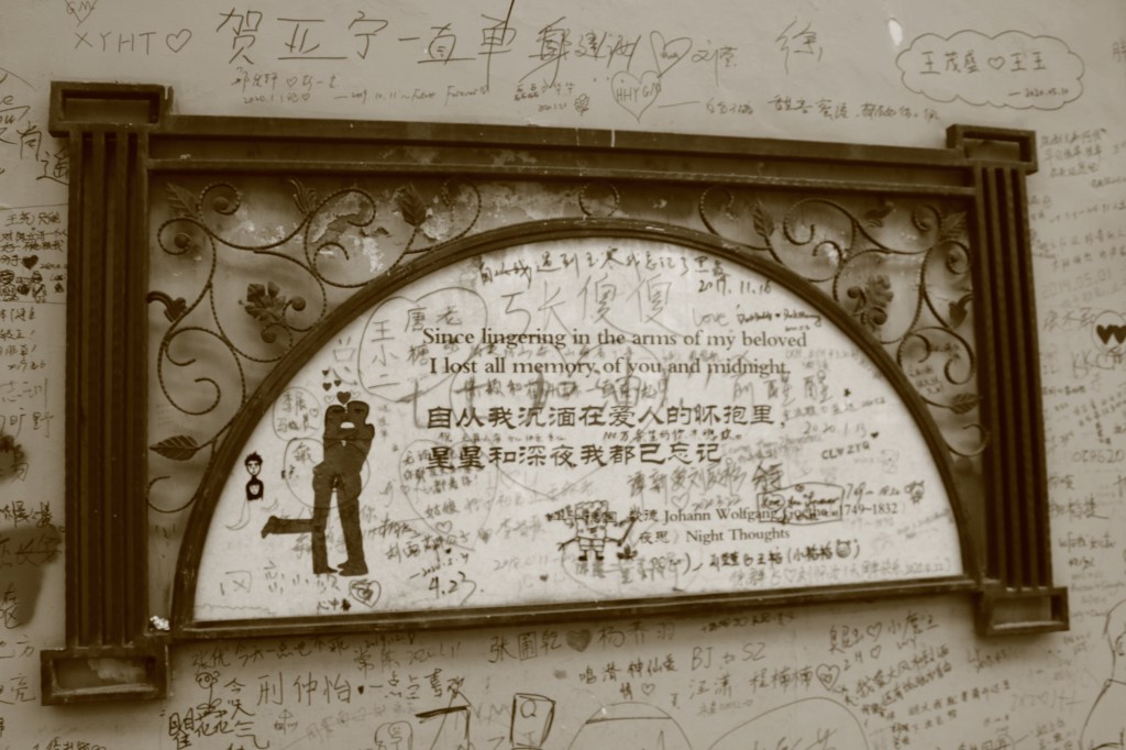 Leider kam irgendwann die „Tradition“ auf, dass die Liebenden sich auch auf der Wand verewigen mussten, und leider nicht nur da, sondern einige eben auch die Gedichte unleserlich machten.
