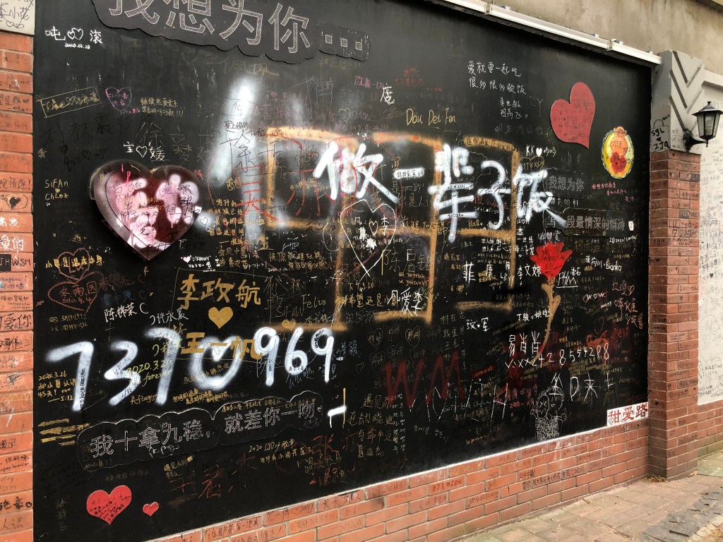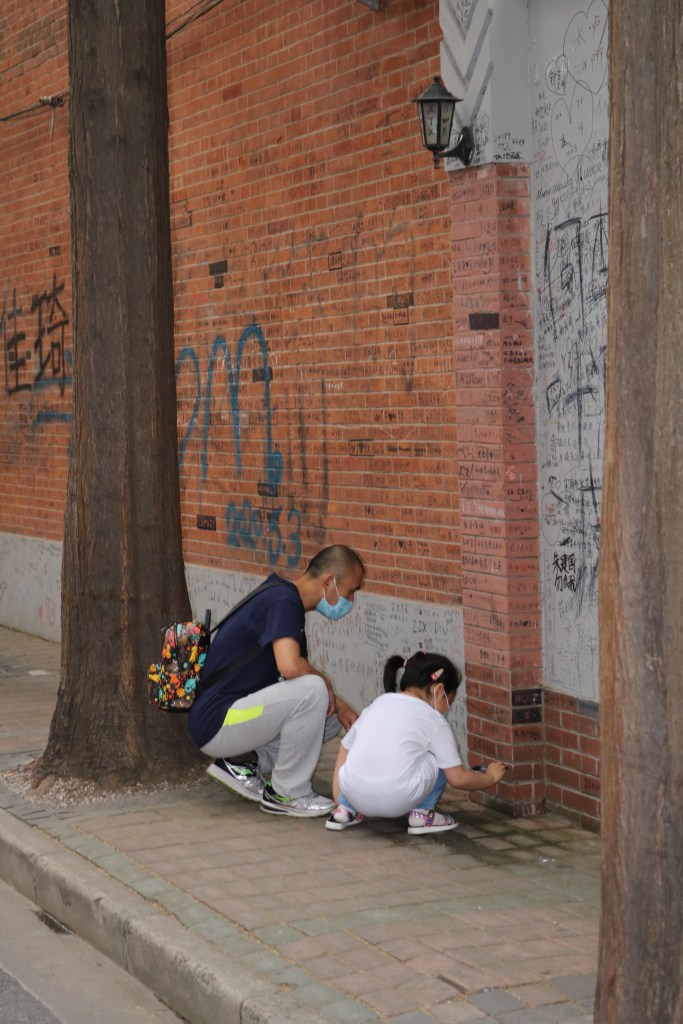 Nachdem wir ca. 40 Minuten durch Shanghai gestrampelt waren (bald kommt mal ein kleiner Film, um Euch am Chaos teilhaben zu lassen), kamen wir in der Tian’ai Road an. Zwar sah ich nicht das, was ich dachte sehen zu können, dafür aber ein verwirrtes Gesicht von Nicole… Weit und breit kein Zeichen von der erhofften Liebesmauer, sondern ein X-beliebiges Wohnviertel – unter anderem mit einem lokalen Straßenfriseur.