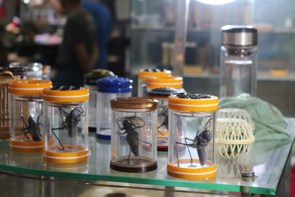 Viele der Besucher – meist Männer – haben als Kind ihre erste Grille bekommen. Der Gesang erinnert sie an die Zeit und halten an der Tradition fest. Einige nehmen mit den Tieren an Kämpfen teil. Mit kleinen Spezialpinseln werden die Tiere gereizt, dann aufeinander gelassen.