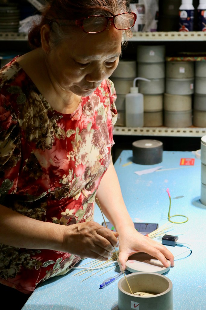 Diesen Markt, den wir besucht haben, gibt es leider bald nicht mehr. Er wird nun nach 23 Jahren geschlossen. Viele der Verkäufer gegen dann in Rente, wie Qu Guoqiang. Der 61jährige schnitzt seit seinem siebten Lebensjahr – meist kleine Teile für Vogel- oder Grillenkäfige. Er weiß, dass sein Handwerk von Maschinen übernommen wird und damit bald ausstirbt.