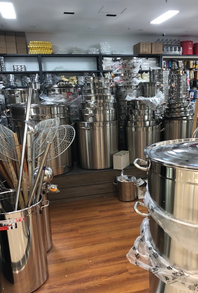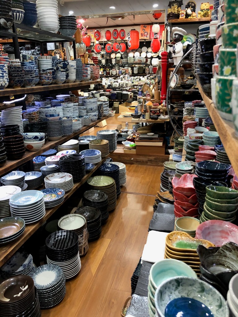 Der “ WANRUN International Hotel Supplies Mart“ ist eher unbekannt (unter nicht Hoteliers) und etwa 15 Minuten von uns entfernt. Hier gibt es Teller, Tassen, Gläser bis zum Abwinken. Ich war zugegebenen Maßen etwas überfordert, als ich nun das erste Mal hier war. Auf den Fotos kann man es gar nicht wiedergeben. Ein Geschäft neben dem anderen, auf zwei Etagen und jeder bietet etwas anderes an. Ich habe gar nicht gewusst, dass es so viele unterschiedliche Sachen gibt.