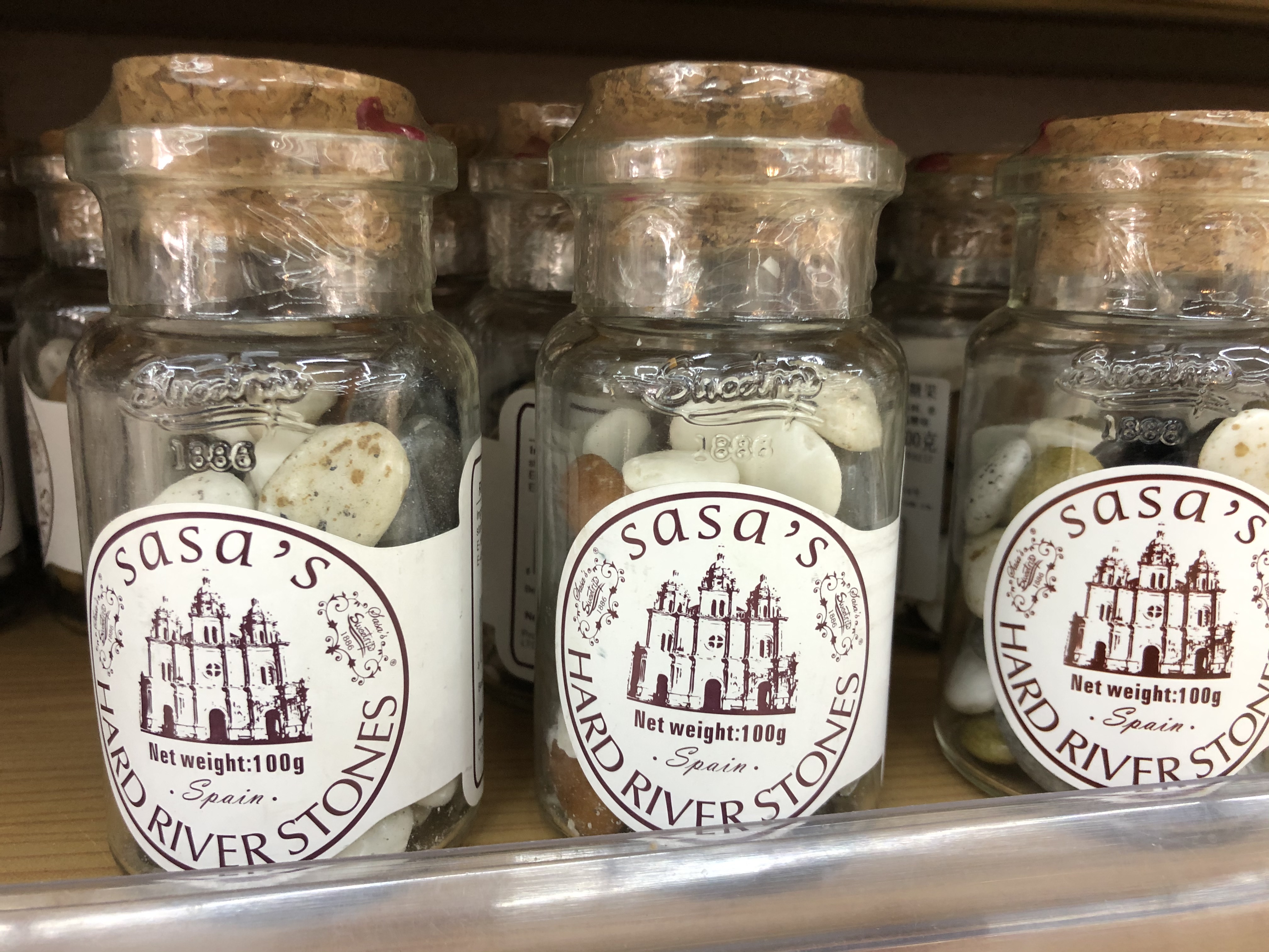 Ich fühlte mich auf jeden Fall in meine Kindheit verletzt, als ich an den Bonbondosen vorbeikam, die wir damals immer an der Tankstelle gekauft hatten, wenn es auf eine längere Autoreisen ging, oder die „Steinbonbons“, die man an der Nordsee oder an Touristenorten am Rhein bekam.