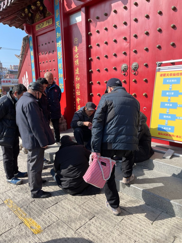 Hier war Lagebesprechung und die Visagistin nahm uns unter ihre Fittiche. Dann erst ging es zum Tempel, vor dem sich nichts-Böses-ahnende-Männer getroffen hatten, um ein Ründchen Karten zu spielen und für uns leider weichen mussten.