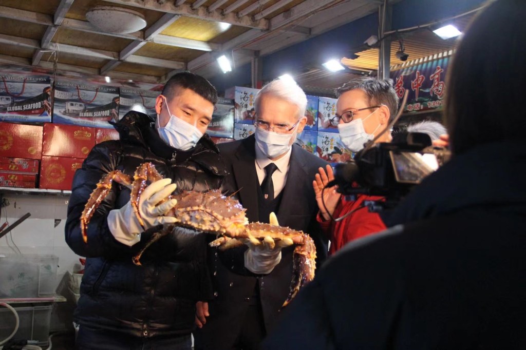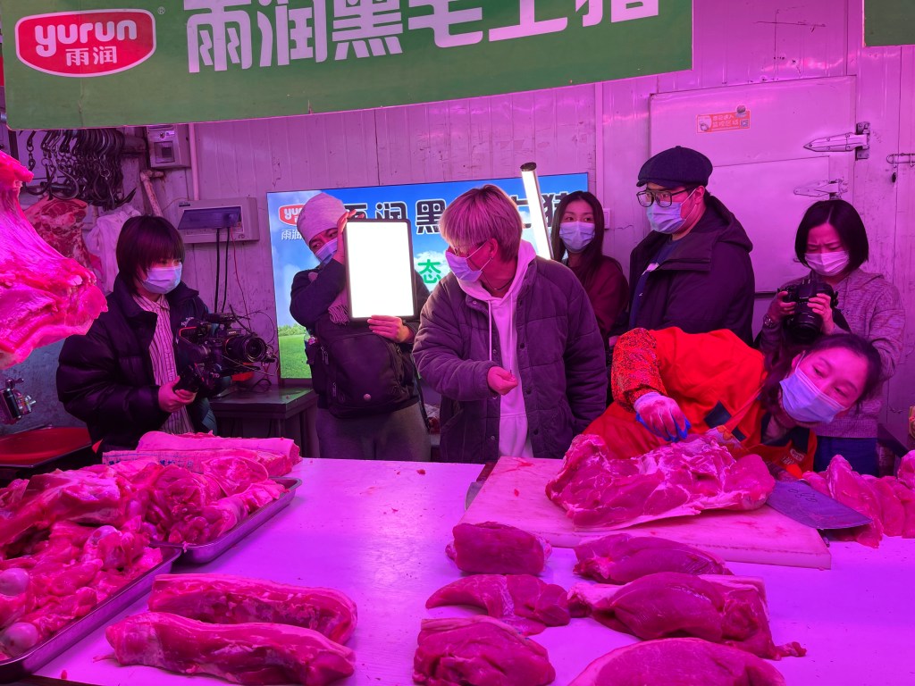 Unsere zweite Station war ein Großmarkt. Hier gibt es unzählige Stände mit allem, was der Magen begehrt – unzählige Gänge mit Fleisch, Fisch, Obst und Gemüse. Da in Shanghai oft vieles größer ist, als an anderen Orten, wurde uns auch eine Riesen-Krabbe präsentiert. Auf die Frage, wie man das große Tier (das die vergangenen vier bis fünf Jahren in der Natur sein Leben genossen hat) in den Topf bekommt, wollte mir keiner so richtig antworten.