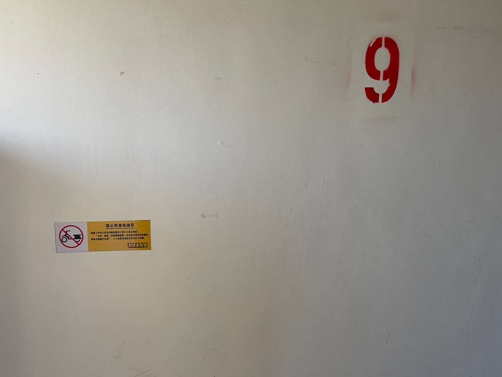 Abschießend waren wir bei einer Familie in der Wohnung, um den ersten Drehtag abzuschließen. Was ich überraschend fand, war der Hinweis in der 9. Etage des Wohnhauses: Abstellen von Motorrädern verboten.