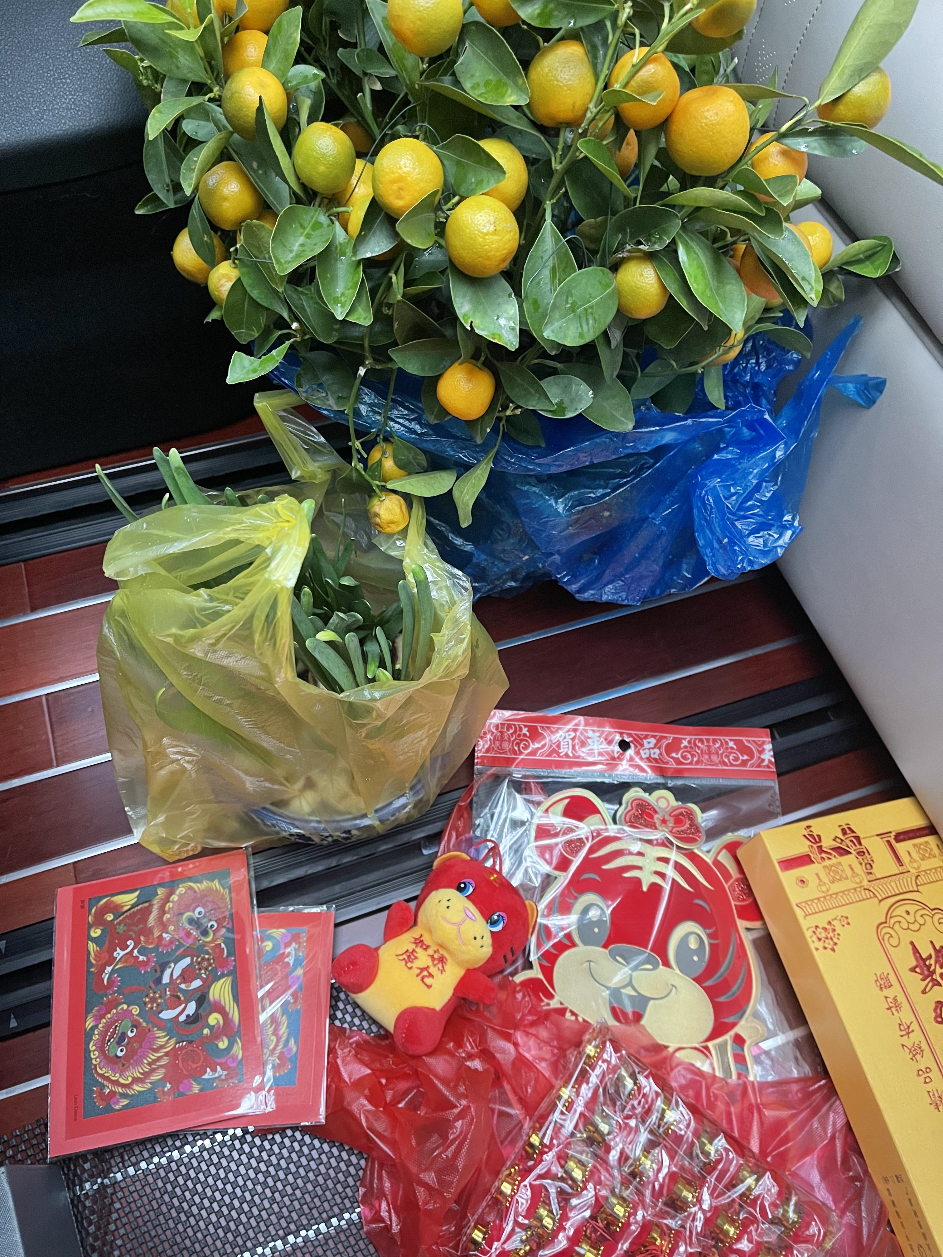 Und natürlich habe ich auch zugeschlagen! Ein Tiger ist Pflicht, der Banner für die Haustür (die Verkäuferin hat für uns Wohlstand, Frieden und Zufriedenheit ausgesucht), Grußkarten, Blumen zum chinesischen Frühlingsanfang am 5. Februar und natürlich ein Mandarinenbäumchen (samt roter Dekoration). In China symbolisieren Zitrusbäume Glück, Zufriedenheit, Reichtum und ein langes Leben und werden vermehrt zu Chinese New Year gekauft.