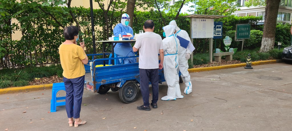Zur Erinnerung: ich habe unseren Compound das letzte Mal vor knapp 10 Wochen verlassen (überleg mal, was Du am 6. März gemacht hast. Ich weiß noch genau, wo ich war: das letzte Mal außerhalb unserer Wohnanlage). Am 1. April ging der westliche Teil Shanghais in den (voraussichtlich fünftägigen) Lockdown – Pudong im Osten war ein paar Tage vorher schon geschlossen. Seit dem drehen wir uns im Kreis. Manchmal dürfen Menschen auf die Straße, manchmal in den Compound, manche sitzen seit dem 1. April auf engem Raum und kommen lediglich zum Testen raus. Manche Menschen haben Tage/ Wochen in Massenunterkünften oder in Quarantänehotels verbracht. Manchmal wurden einfach die Lebensmittelbestellungen für ein paar Tage eingestellt, manchmal kommt ein „Love Paket “ von der Regierung (Care-Paket).