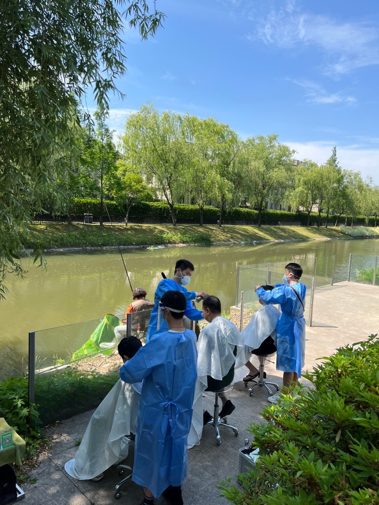 Bei uns war gestern Beauty-Tag. Ein Bewohner hatte eine Gruppe an Friseuren buchen können und einen Aufruf gestartet: 50 RMB (7 Euro) der Haarschnitt. Und so sah es im Jahre 2022 in Shanghai aus -der modernsten Metropole Chinas: