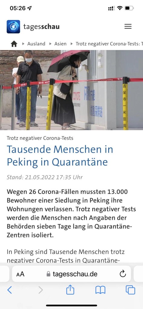 Auf und zu ist momentan die Devise. Während einige Freigang haben, werden andere wieder aufgefordert, ihre Wohnungen nicht zu verlassen und auch in Peking gehen immer mehr Menschen in Zentralquarantäne, wenn sie jemandem begegnet sind, der positiv getestet wurde. Eine Freundin schickte mir dies Bilder aus der Pekinger U-Bahn und von einer Teststation: