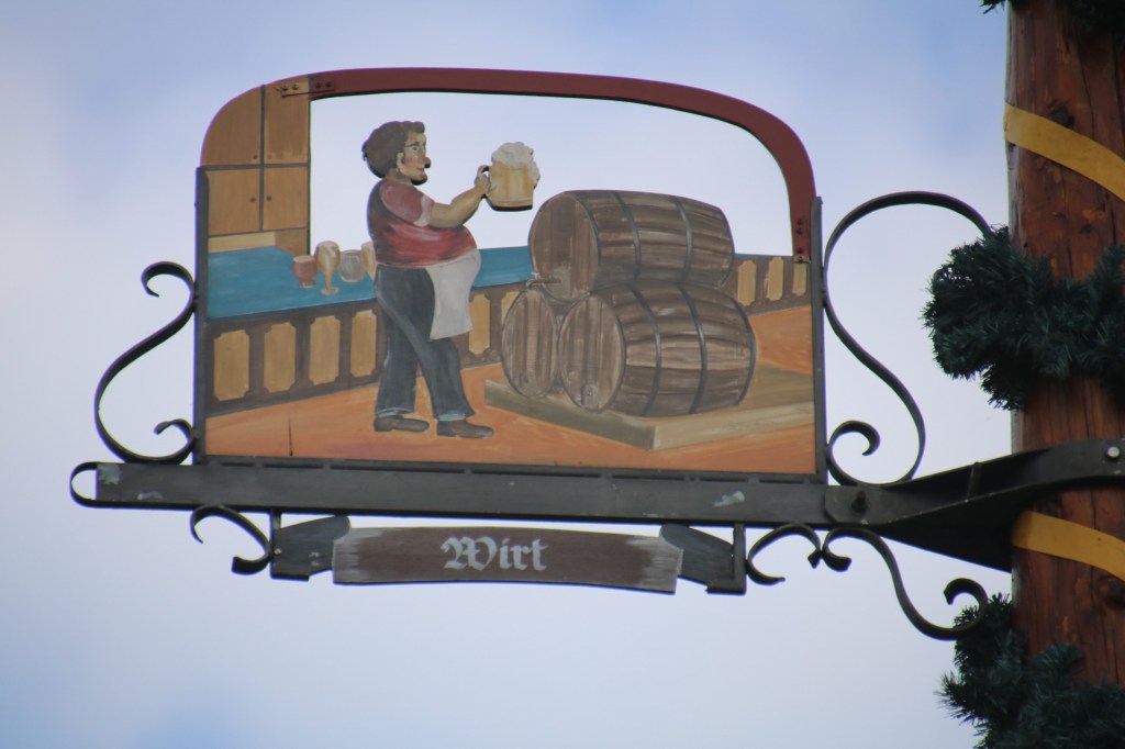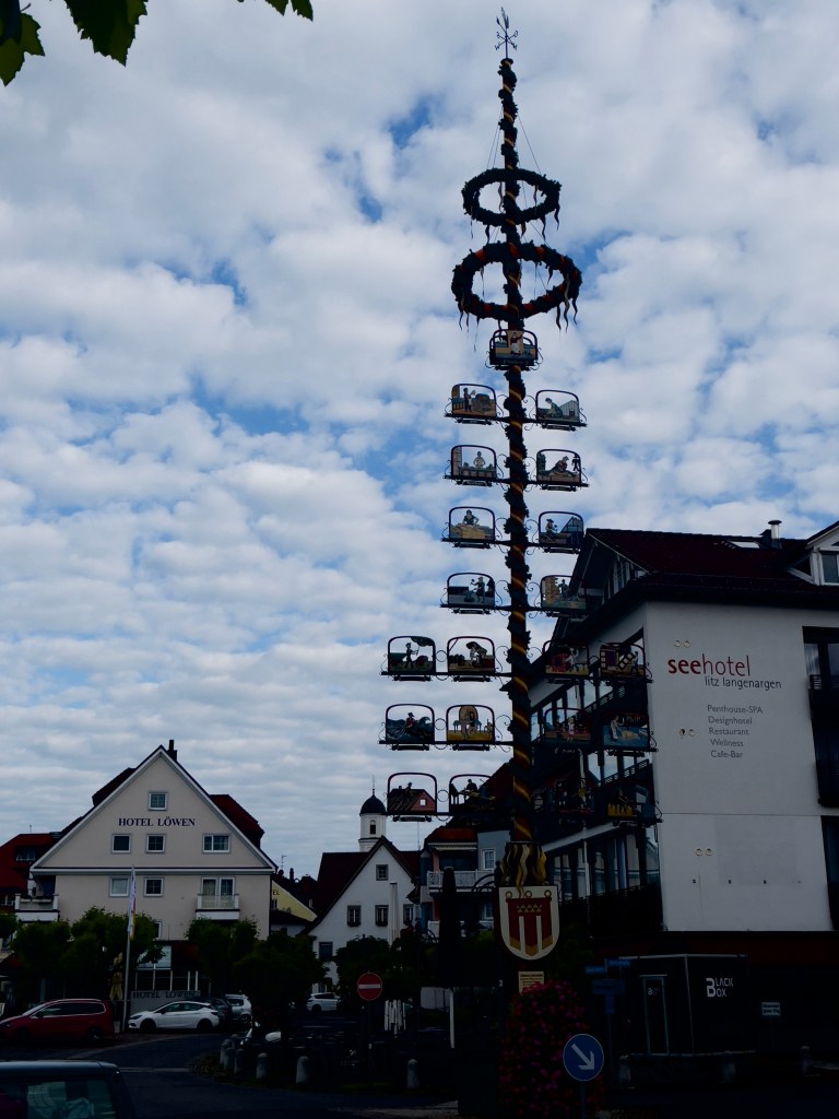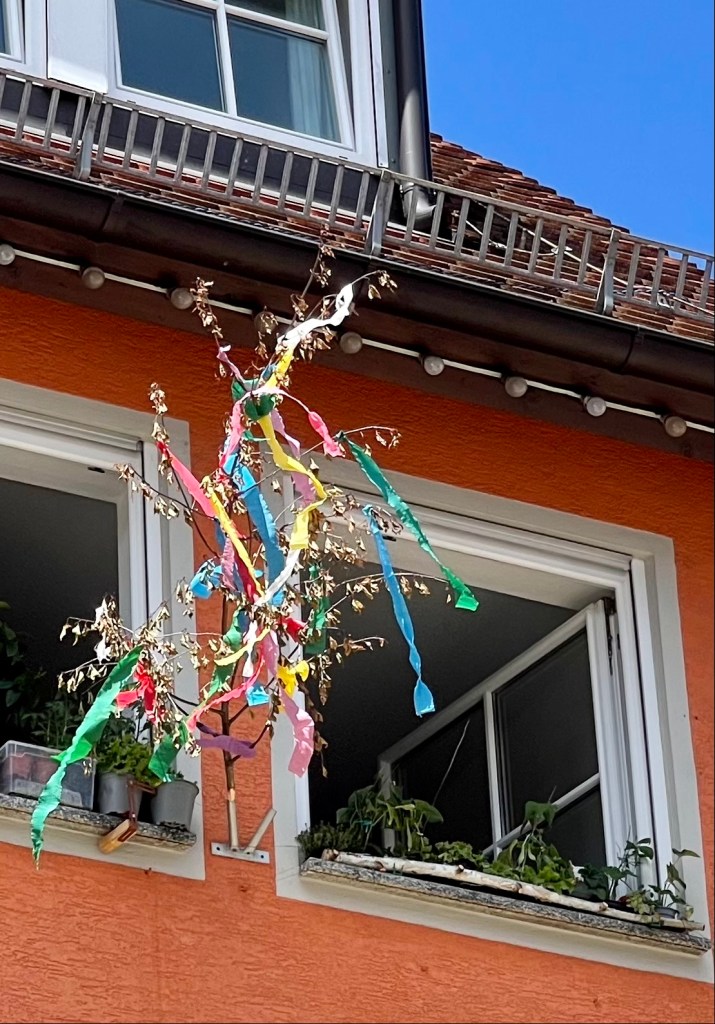 Und die Touristen fotografieren die Dorfstraße mit dem Mai-Baum, der alle Zünfte präsentiert.