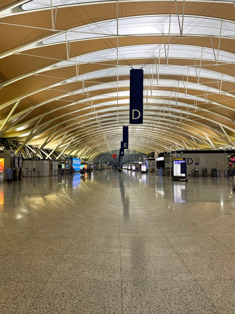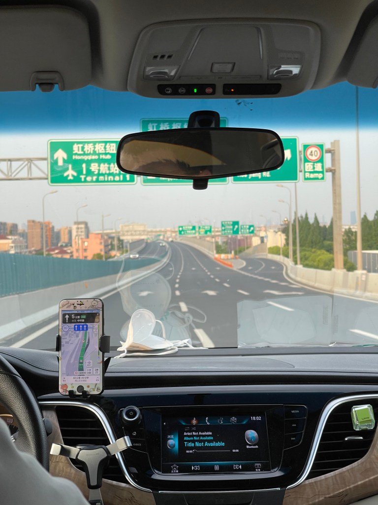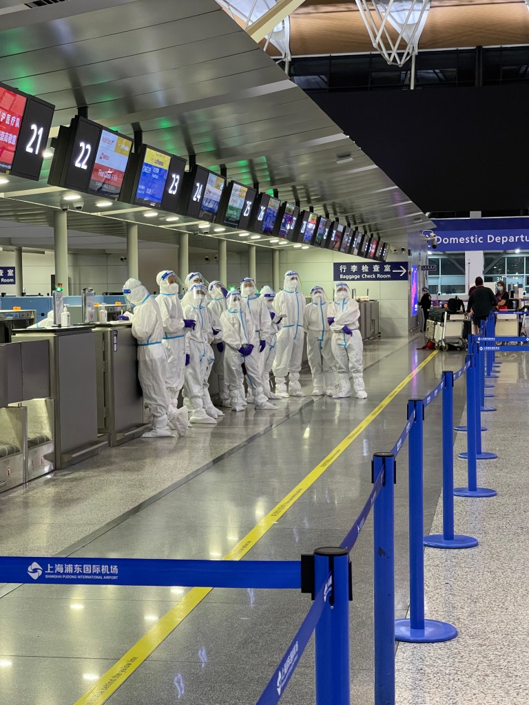 Um China verlassen zu können, benötigt man – neben dem Flugticket und einem gültigen Visum für China (um wieder rein zu kommen), die Erlaubnis des Nachbarschafts-Komitees. Ohne dieses kann man erst gar nicht den Compound verlassen. Allerdings braucht man auch die Erlaubnis, dass man – sollte der Flieger aus welchen Gründen auch immer nicht starten – wieder zurück ins Haus darf. Darüber hinaus muss man einen PCR Test maximal 48 Stunden vor Abflug und einen Selbsttest am Abflugtag vorweisen. Diese Unterlagen in der Tasche und mit gepackten Koffern ging es mit einem Auto, das die Berechtigung hat, auch über die jeweiligen Inner-Stadt-Grenzen zu fahren (die jeweiligen Bezirke sind eingezäunt und abgegrenzt – natürlich auch auf der Autobahn), zum Flughafen. Seit drei Monaten das erste Mal im Auto – ganz schön spannend.