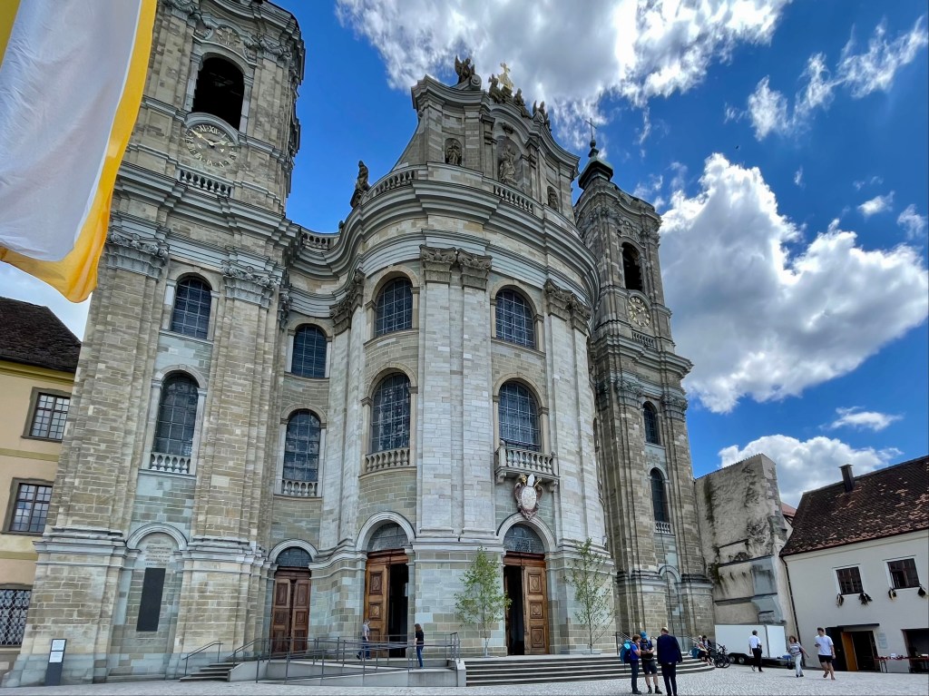 Geduld war dennoch angesagt. Etwa eineinhalb Stunden mussten wir vor dem Checkin warten, dann weitere 45 Minuten vor der Passkontrolle. Aber um kurz vor Mitternacht waren wir an Bord des Flugzeuges und hoben ohne Pannen ab. Knapp 14 Stunden später (die Flugzeuge dürfen momentan nicht über der Ukraine fliegen) waren wir in Frankfurt. Müde aber glücklich ging es weiter an den Bodensee, wo wir erst einmal unsere „Zelte“ aufschlagen. In Weingarten sollten wir direkt unseren Impf-Booster bekommen. Leider hatten sie nur noch Moderna – dieser Impfstoff ist nicht für Minderjährige zugelassen. So blieb uns nichts anderes übrig, als ein Eis zu schlecken und uns die größte Barocke Basilika Deutschlands anzuschauen. Sie ist halb so gros wie der Petersdom in Rom. Die imposante Orgel soll 6.666 Pfeifen und ein Repertoire von Instrumententönen, Vogelgesang und der legendären Menschenstimme „Vox Humana“ haben.