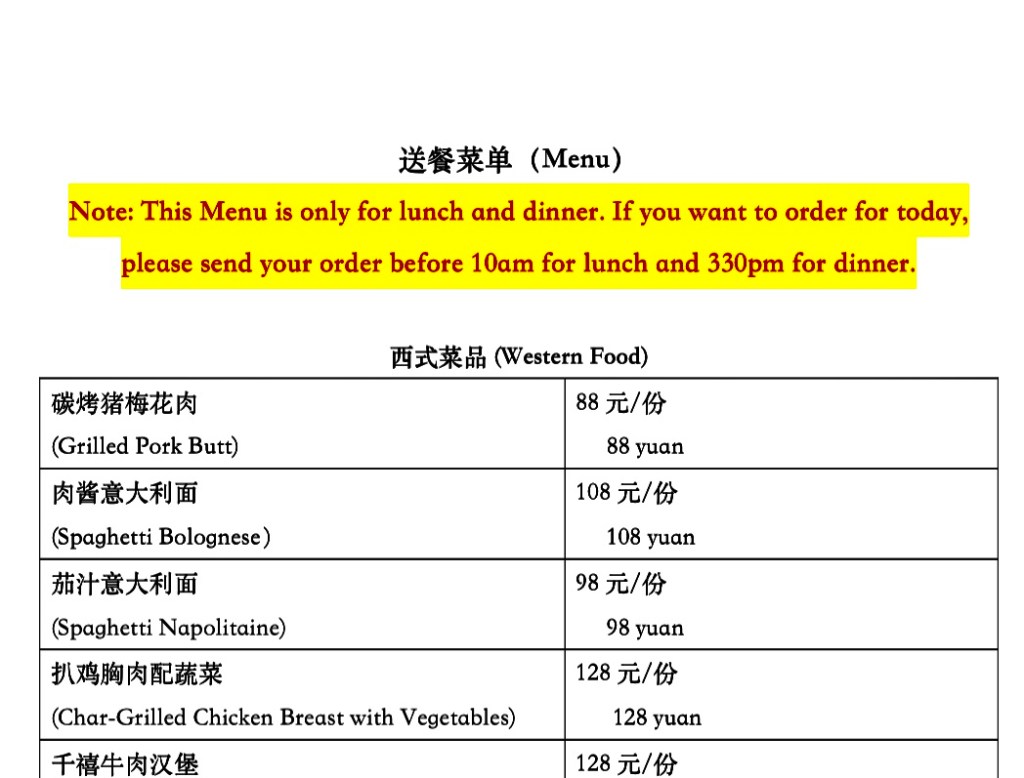 Da bleibe ich doch lieber in meinem Zimmer und wundere mich über die Speiseliste: