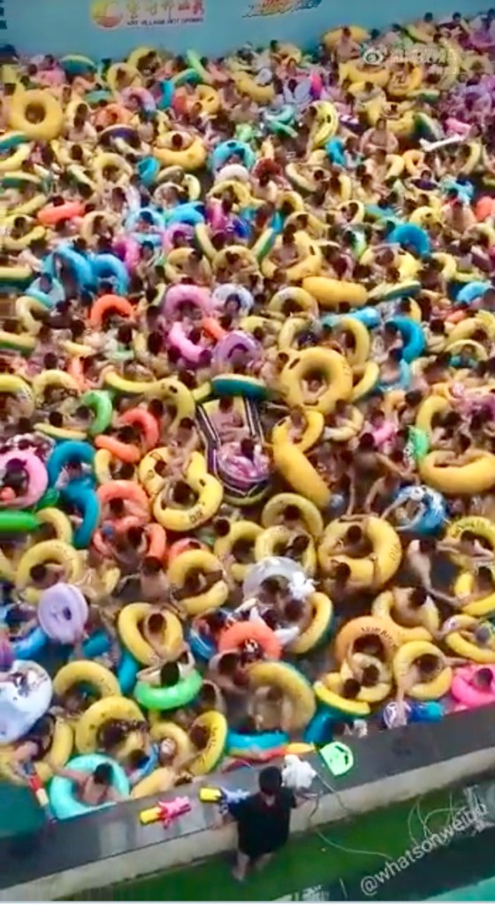 Das sind keine Fruitloops in meiner Schüssel am Morgen, sondern ein Bild aus dem Netz aus einem chinesischen Schwimmbad, in dem sich ein paar Leute anscheinend Abkühlung suchen. In den vergangenen Wochen muss es hier extrem heiß gewesen sein. Alle berichten vom Temperatursturz: in den kommen Tagen soll sie bis auf 30 Grad sinken,