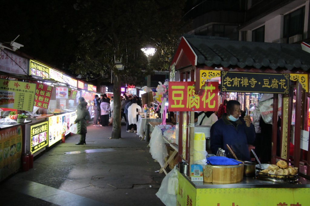 Wir hatten keine Vorstellung von Wuxi (ich war vor zwei Jahre im Sommer dort, um den riesigen Buddha zu sehen – HIER klicken). Damals hatten wir es nicht mehr in die Stadt geschafft. Dafür ging es heute noch zum Tempel, der leider schon geschlossen, die Fressgassen mit den Spielenden und Wahrsagern drumherum dafür aber schon gut besucht waren.