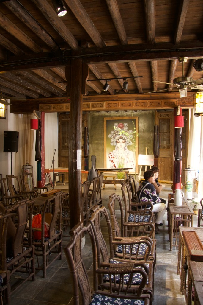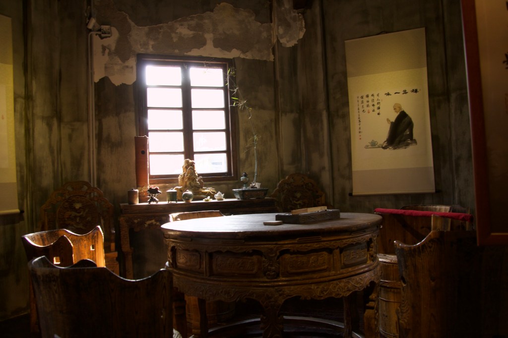 Ich war mit ein paar chinesischen Bekannten unterwegs und das eröffnet einem noch mal so viel mehr Einblick. So bekamen wir im benachbarten Tea-House neben einem Getränk auch ein Privatkonzert vom Meister persönlich und eine Tour durch das Nachbarhaus. Dies entpuppte sich als die Zentrale der Demokratischen Partei in Shanghai Pudong und als eine Fundgrube der antiken Möbel mit angeschlossenen Hotelzimmern.