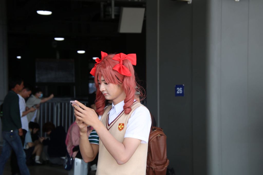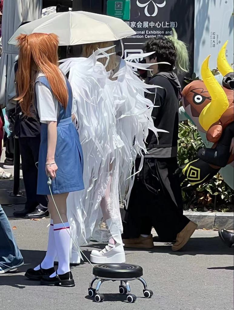 Zurück in Shanghai wurde ich in eine noch andere Welt gesogen. Etwas verrückt sahen auch die Leute aus, die auf die Com-Messe in Shanghai gingen. Eine Menge Cross-Player und Menschen, die anscheinend sehr viel Spaß am Verkleiden haben (ein wichtiger Moment bei der ganzen Sache scheint ein Stuhl zu sein und junge Männer in Frauenkleidern).