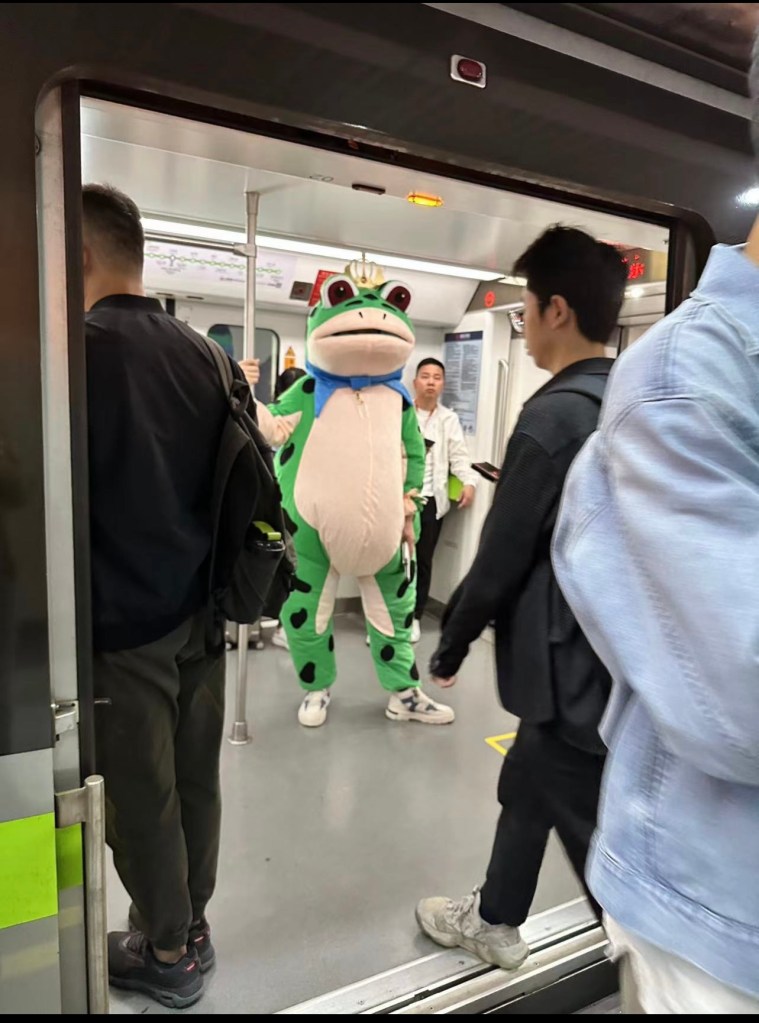 China ist im Amphibien-Fieber: Überall im Land gehen derzeit Menschen in Froschkostümen auf die Straße, um zu tanzen, Stunts zu vollführen – oder sich einfach mal so zu benehmen, wie es die sozialen Normen sonst nicht zulassen. Designt hat das Kostüm eine arbeitslose Kunststudentin aus Nanjing, die selbst damit auf der Straße Spielzeug verkaufte, in den Sozialmedien viral ging. Und das zeigt eben auch sehr gut: in China sind nicht alle uniform.